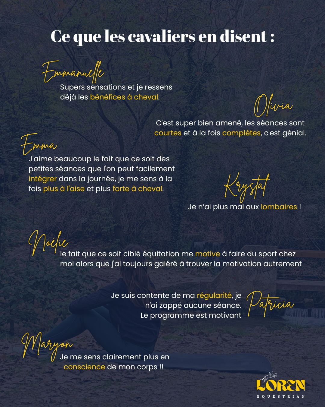Le but est de comprendre les répercussions que cela va avoir sur ton équitation, comme ça tu sais pourquoi tu le fais !